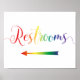 Rainbow restrooms sign with a left arrow. Ideal for an LQBTQ wedding or event.