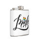 Well made flask, a little better than I had expected. Flask came in clear plastic box which gave it a nice presentation when I took it out of the zazzle packaging. Image is not printed on flask but on sticker. Don't know how this will hold up I haven't used it yet. This would make a Great gift! I plan to purchase more for friends! Cheers. I thought a little brighter than computer. Very crisp, writing wasn't