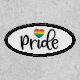 Pride in script text with a rainbow heart. Choose iron on, adhesive, or velcro. These can be used on a variety of different surfaces, from shirts to shoes, folders to cell phones.