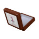 This product is made with beautiful mahogany wood, the inside is lined with white satin. The hinges are very sturdy and keeps a tight close on the box. The pattern tile is wonderful It's truly is an exquisite product. This is a gift for anyone and for any occasion. A fine wooden piece to display on your furniture anywhere in your home. The printing accented the design on the box very well. Very pleased with the Font.