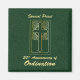 Elegant design, this 50th Ordination Anniversary gift, souvenir, giveaway and party essential for a priest has gold colored words and a cross with host behind it in a gold look. The background is a leather look in dark green. Beautiful card to wish a priest congratulations and blessings on his 50th anniversary!