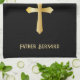 Add your own name to this unique kitchen towel which features a priest's white collar and gold chain with cross.