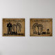 Prim style silhouettes, old fashione grunge colored and textured background with picket fences, willow trees and sheep and an old saltbox style house. Cherie's Art(c)2024