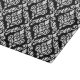 Ornate baroque style damask surface pattern design in white detail on a black background.