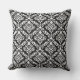 Prima Damask Pattern White on Black Throw Pillow