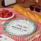 Primary colors of red blue and yellow plus orange and green make for bright birthday party plates! Featuring fun rainbow colored confetti circles sprinkles all around with your birthday boy's info in the center. "Party Time" in fun script font with your birthday boy's information below.