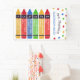 Classroom rules banner with six rules for a classroom personalized with the teacher's name beneath colorful stars. The rules are written on crayons in red, yellow, green, and blue. The text is customizable so you can change to your rules! Kindergarten classroom rules banner with colorful crayons and stars against a white background.