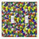 PRIMARY COLORS-SMILEY FACE BEADS-GREEN-DOUBLE TOGGLE LIGHT SWITCH COVER-Tiny little round face beads in the four primary colors (red, yellow; green and blue) mixed with white. The are in assorted sizes and are scattered in every direction. The background is a solid color. This design is part of a complete collection entitled: PRIMARY COLORS. Each design in the collection is created with only four colors (or less): red, yellow; green and blue. Mix and match a large variety of primary colored designs available for a completed party theme. Choose from kaleidoscope patterns, polka dots; unique stripes, plaids and more. The colors make great gifts and decor for toddlers, daycare centers; preschools, kindergartens; home schools, teachers and more. Choose any size/style of electrical switch covers.