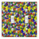 PRIMARY COLORS-SMILEY FACE BEADS-YELLOW-DOUBLE TOGGLE LIGHT SWITCH COVER-Tiny little round face beads in the four primary colors (red, yellow; green and blue) mixed with white. The are in assorted sizes and are scattered in every direction. The background is a solid color. This design is part of a complete collection entitled: PRIMARY COLORS. Each design in the collection is created with only four colors (or less): red, yellow; green and blue. Mix and match a large variety of primary colored designs available for a completed party theme. Choose from kaleidoscope patterns, polka dots; unique stripes, plaids and more. The colors make great gifts and decor for toddlers, daycare centers; preschools, kindergartens; home schools, teachers and more. Choose any size/style of electrical switch covers.