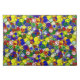 PRIMARY COLORS-HAPPY FACE ALLOVER BEADS-COTTON PLACE-MAT-Tiny little round face beads in the four primary colors (red, yellow; green and blue) mixed with white. The are in assorted sizes and are scattered in every direction. The background is a solid color. This design is part of a complete collection entitled: PRIMARY COLORS. Each design in the collection is created with only four colors (or less): red, yellow; green and blue. Mix and match a variety of primary colored designs available, they all coordinate! Choose from kaleidoscope patterns, polka dots; unique stripes, plaids and more. The colors make great gifts and decor for toddlers, daycare centers; preschools, kindergartens; home schools, teachers and more. Several designs are available. Each one is different but coordinating with one another. A paper party place-mat (wipe-able) is available as well. *The yellow in this design is much brighter then the preview shows on some products.