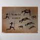 Primitive cave art horses custom poster print, a design that imitates the cave art, featuring two bowmen with bows aiming at horses in black brown colors and grunge style.
