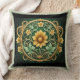 Primrose Guild Pillow, a luxurious accent piece that seamlessly blends timeless design with modern comfort. This exquisite pillow features an intricate Baroque pattern, showcasing swirling scrolls and floral motifs that pay homage to the grandeur of the Baroque era. The rich, deep green fabric is adorned with opulent gold detailing, exuding elegance and sophistication.