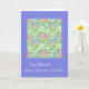 A pretty February Birthday Card for a Step Mother, with a pattern of deep pink, deep blue and yellow primroses, the February Birth Month Flower, from a handpainted design by Judy Adamson.