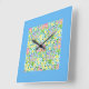 Primroses Square Wall Clock, Turquoise Border Square Wall Clock