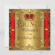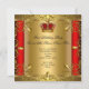 Prince 1st Birthday Boy Red Gold Crown 2 Invitation