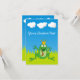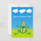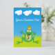 Prince frog cartoon with crown. Removable background elements (sky, grass, clouds). Custom text.