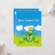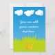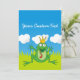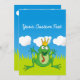 Prince frog cartoon with crown. Removable background elements (sky, grass, clouds). Custom text.