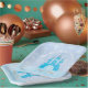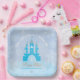 Personalized prince or princess birthday party plates. Frozen Blue Background with "Once upon a time, in a faraway land..." and then the birthday kiddo's name and age printed below.