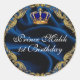Prince Royal blue and gold crown and silk Classic Round Sticker