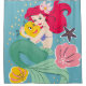 Beautiful illustrated graphic of Ariel hugging Flounder, surrounded by sea shells.