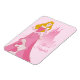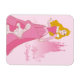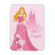 Princess Aurora in her pink ball gown with the castle silhouette in the background.