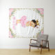 Princess baby shower backdrop with adorable princess baby with pretty pink tutu and pearls on an elegant pink and gold floral background. This adorable princess baby shower backdrop is easily customized with the text of your choice. You can also change the background color.