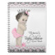 Adorable vintage princess baby shower guest book and gift log notebook with adorable vintage princess baby girl on a pretty pink and black lace background. Customize with your choice of text in the font style and color of your choice. This handy baby shower guest book makes sending Thank You cards much easier!!