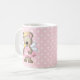 Cute fantasy design with bear princess wearing a cute pink dress with fairy wings, crown and wand on pink with white hearts background on most products.