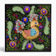 Keep your papers organized in a fun and whimsical way by using this charming Princess Birdie Binder. Princess Birdie is a delightful whimsical illustration created by Debi Payne Designs. Her royal majesty Princess Birdie is created with a lavish golden tan body accented by swirls of deep brown. Her wing is created in colors of teal and coral also accented by whimsical swirls over the teal. The lovely teardrop feathers on her head and tail are in coordinating colors of teal and coral colors on her wing. The Princess Birdie is perched on a whimsical folk art style background of multicolored flower and soft green leaves.