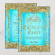 Princess Birthday Party Teal Blue Gold Tiara Invitation