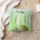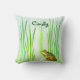 This throw pillow features a small female green frog with a yellow belly sitting among the grasses at the pond. She seems lonely as if she is waiting for her Prince Charming to appear. The image is repeated on the back. Change the name or delete it entirely.