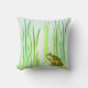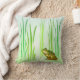 This throw pillow features a small female green frog with a yellow belly sitting among the grasses at the pond. She seems lonely as if she is waiting for her Prince Charming to appear. The image is repeated on the back.