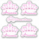 These cute stickers feature a pink girly crown with cute hearts. The bright pink script text can easily be personalized with a name, other text or removed.