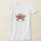 Cute t-shirt with graphics of a pink heart kitty nose, whiskers, gold glitter looking ears, pink glittery eyes, with a pretty bunch of pink flowers and golden crown, on it's head. Customize to add text to this great cat lovers tee.