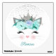 Sweet kitty face wall sticker done in silver and teal, with silver tone crown and ears. Personalize the teal colored text to suit your needs.