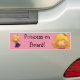 A bumper sticker featuring a happy cartoon Princess with rosey cheeks and yellow blond hair dances in a fancy purple dress with dark blue accents.