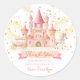 Celebrate your little princess's special day with this pink and gold castle party favor sticker! Add this to your party favors as a thank you or create customized stickers for your guests and birthday girl! Features pink and gold fairytale castle and magical stars. Coordinating invitation and party decor also available.