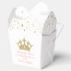 Mini Takeout Favor Box for a Princess Party Birthday, Personalized with their name and custom "Thank you from the princess" wording in pink and faux gold glitter and confetti with an editable background and text color so you can match the exact color scheme of your royal theme celebration.