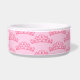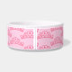 Medium size pet bowl shown in white with a solid color pink accent strip with a cute princess tiara print design.