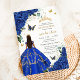 Princess Quinceañera Royal Blue Roses Dress Gold Invitation