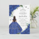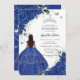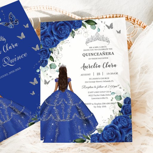 Princess Quinceañera Royal Blue Roses Silver Dress Invitation