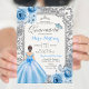 Princess Silver and Blue Roses Mis Quince Invitation