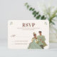 Complete your fairytale wedding suite with this beautifully designed RSVP card featuring Princess Tiana and Prince Naveen. With soft greenery accents and refined fonts, this card invites your guests to respond with elegance and ease. The royal couple adds a magical Disney touch, making it a perfect match for your Princess and the Frog–inspired celebration. Personalize with your wedding response details to make it uniquely yours.