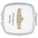 Mirror compact is shown with a photo print of a pageant princess tiara.