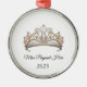 This silver-colored premium metal ornament is shown with a sparkling crystal tiara with black text on a white background.