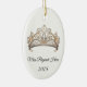 This ceramic ornament is shown with a sparkling crystal tiara with black text on a white background.
