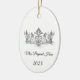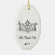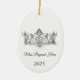 This ceramic ornament is shown in a oval shape with a sparkling silver crystal tiara with black text on a white background.