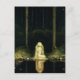 Princess Tuvstarr with long, blonde, wavy hair sitting in the forest, looking down at her reflection in the dark waters. Beautiful watercolor by John Bauer. Illustration for the Swedish folktale "The story of Skutt the moose and little Princess Tuvstarr", written by Helge Kjellin in 1913.