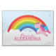 Calling all princesses! This fun print features a unicorn frolicking on a colorful rainbow! Customized with your princess’s name to make it uniquely yours!