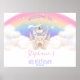 Elegant castle and rainbow in pastel colors with whimsical fonts.